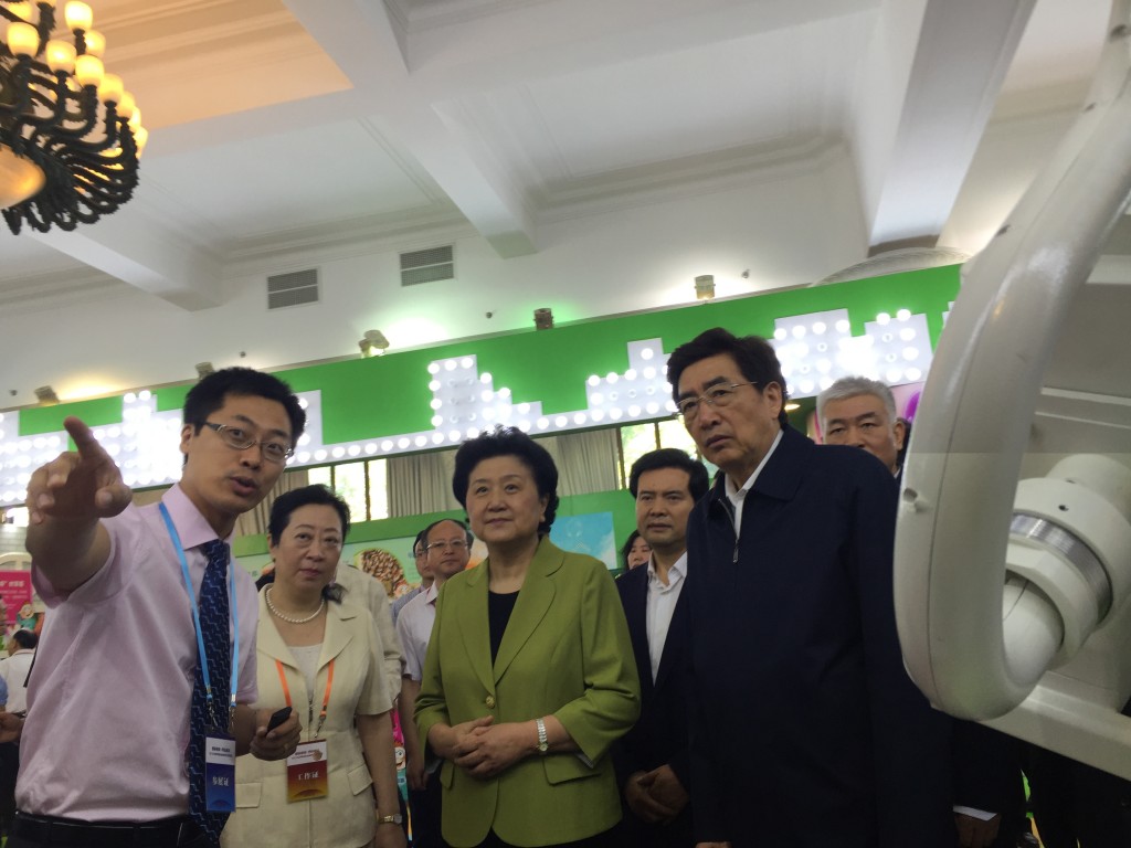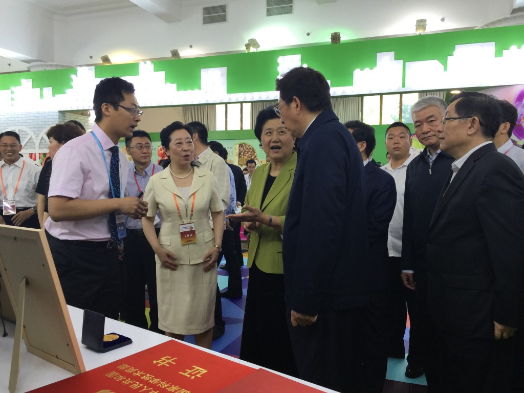 在本届科技周的会展上,由中国科学院自动化研究所自主研发的分子影像肿瘤手术导航系统亮相在本届科技周会场,并受到刘延东副总理、郭金龙书记、万钢部长、 王正伟主任及北京市科委闫傲霜主任等领导人的高度关注。自动化所的科研人员介绍说,我们自主研发的分子影像肿瘤手术导航系统能够从肿瘤细胞分子水平进行成 像,能够为肿瘤早期诊断和手术过程中精准定位肿瘤的临床问题提供有效帮助。通过多年的技术积累,相关核心技术已获得3项授权美国发明专利、60余项国内发 明专利,形成了完整的自主知识产权体系。同时还获得了国家科技进步奖、国家技术发明奖以及日内瓦国际发明金奖等奖励。目前设备已经在301医院、北京协和 医院、东方肝胆外科医院、西京医院及珠江医院等国内7家医院开展了乳腺癌、肝癌及胃癌等方面的临床应用,成功诊疗百余例肿瘤患者,为早期微小肿瘤病灶的精 准切除提供了一种有效方法。刘延东副总理听了以后特别感兴趣,耐心的询问设备临床使用情况,国外研究的进展,以及产业化成果如何。当得知虽然技术成果处于 国际领先水平,但尚未实现产业的规?;保跹佣弊芾硖岢鲇Ω眉涌煲搅破餍档纳笈?,尽早实现我国自主知识产权医疗器械产品的产业化。自动化所的 科研人员深受鼓舞,力争在高端医疗器械产业创立起具有我国自主知识产权的民族品牌。