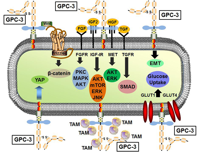 图一:Glypican-3蛋白的在胞膜上及膜内主要转运原理(DOI: 10.1002/med.21455)