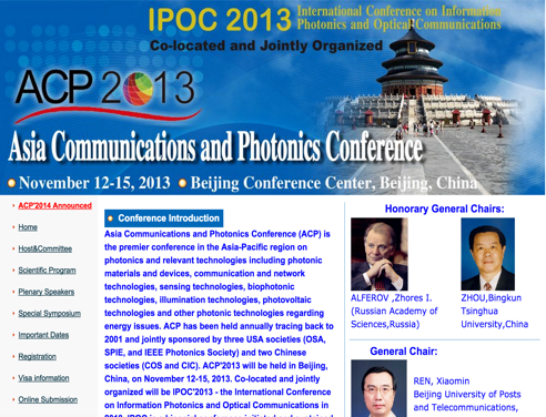 田捷研究员任 2013 Asia Communications and Photonics Conference (ACP’2013)...