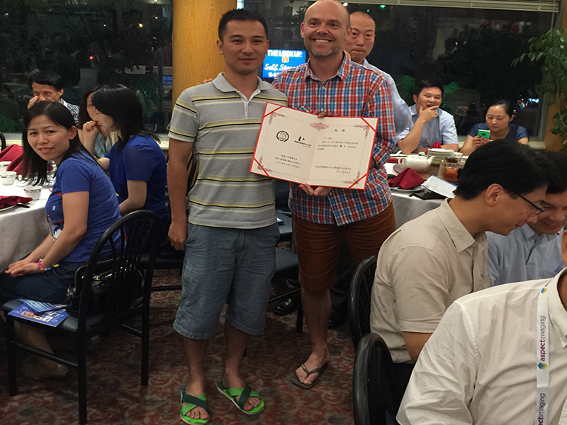 中国生物物理学会分子影像专委会与中美核医学及分子影像学会共同的组织的China Night活动还受到了珀金埃尔默有限公司(PerkinElmer)的资助,并举办了首届“WMIC中国学生论文奖”的评奖。经过评奖委员会委派专家评审,共评出口头报告金奖1名,银奖2名;海报展示金奖1名,银奖4名?;窠泵ト缦拢?br /> 口头报告金奖获得者:乐旭义,美国华盛顿大学